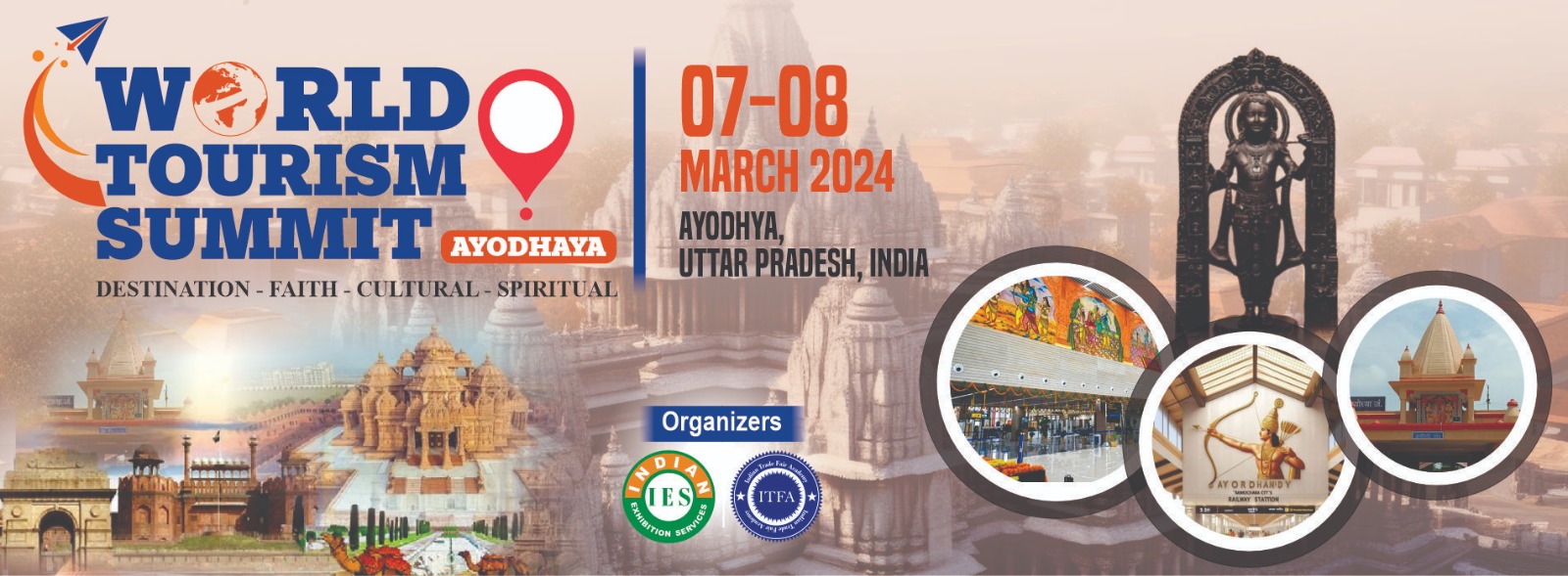 World Tourism Conclave (WTC 2024) main aim to promote India’s destinations specially Ayodhya in Maldives, Malaysia Cambodia, Vietnam, Laos, China, Nepal, Bhutan, Thailand, Sri Lanka, Indonesia, Mauritius, Guyana, Singapore, Hong Kong, USA, Canada, U.K, Japan. and emphasize the significance of the industry and raise awareness about Shri Ram Temple Ayodhya and other India’s destinations. Tour operators, travel agent, state tourism board, airlines, hotels, country tourism board from India and above mention countries will attend in World Travel Conclave 2024, Ayodhya, Uttar Pradesh, India